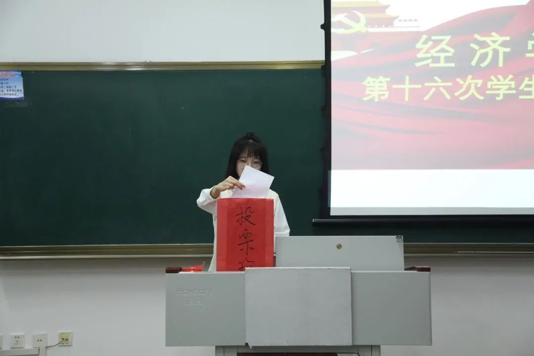 秉承民主、公平、公正的原则,参会代表认真严肃听取了候选人的演讲,在演讲结束后于拟竞选学生干部民主测评投票单上进行投票,并依次将投票单投入投票箱中。在学生代表的见证下,最终通过投票选举产生了新一届的学生会主席团。