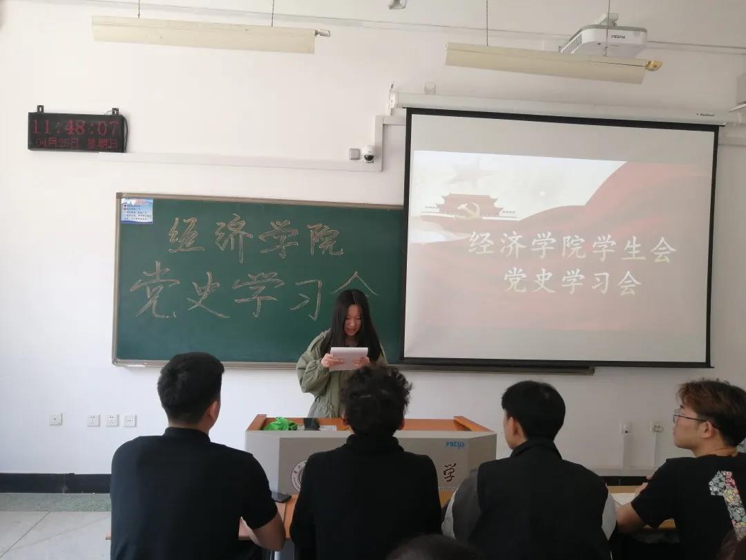 随后,其他学生会成员们分别上台为大家做学习分享,大家通过分享党史故事、党的奋斗历程和党的实践经验等进一步在学思践悟中树立正确的党史观。
