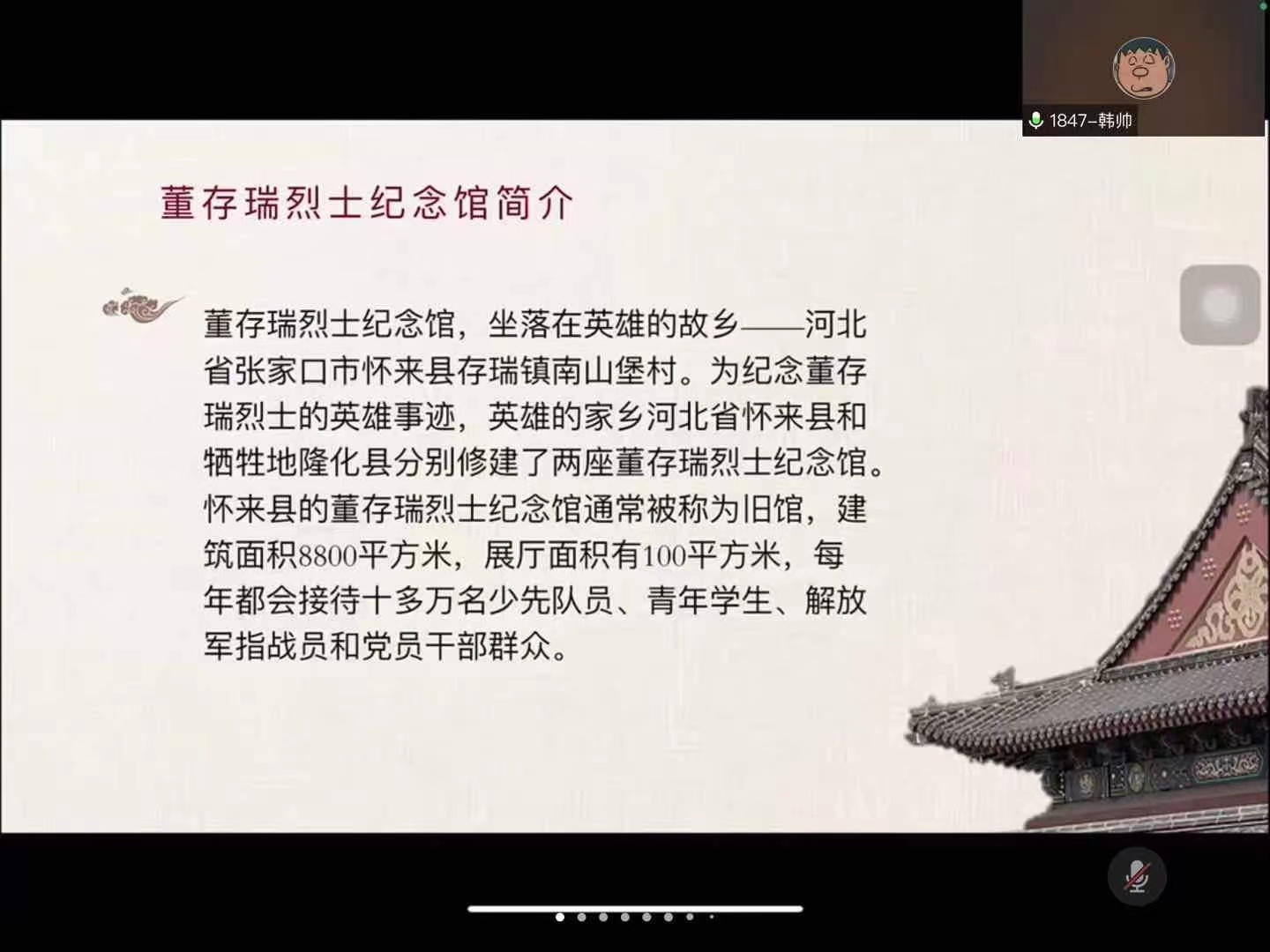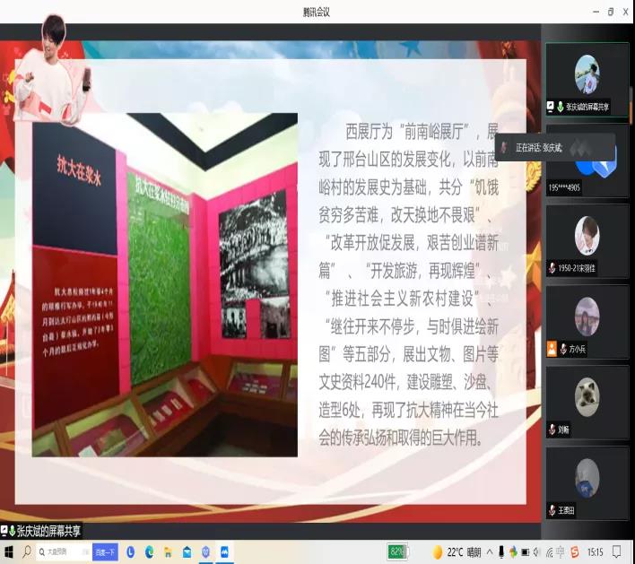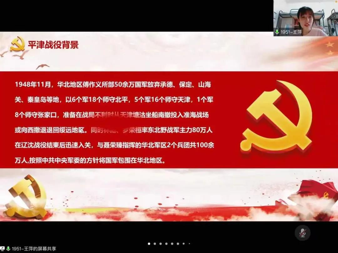 最后,探花视频 的优秀团员张庆斌、张佳文、赵诺、吴笛、王萍五位同学分别为我们介绍了抗大陈列馆、东北沦陷史陈列馆、淮海战役总前委旧址、内蒙古民族解放史馆、平津战役纪念馆。使各位团员了解到各个红色景点悠久的历史文化和先辈们光荣的革命传统。