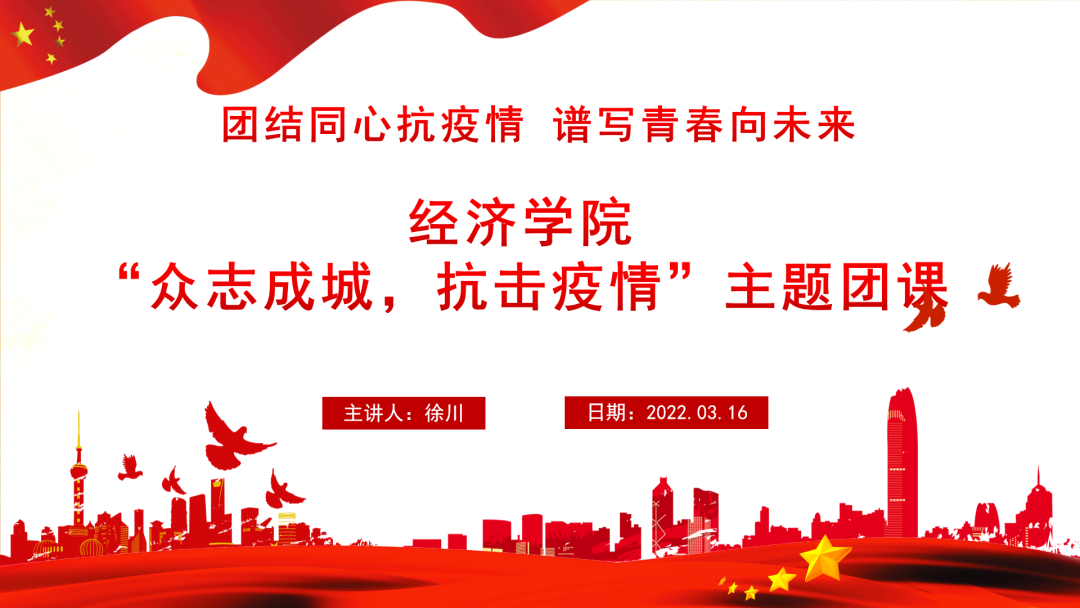 为深入贯彻落实学校党委疫情防控工作决策部署,加强疫情防控,增强共青团员的防疫意识,提高思想觉悟,进一步提高同学们的凝聚力与向心力。3月16日下午,探花视频 组织开展了以“众志成城,抗击疫情”为主题的线上团课。