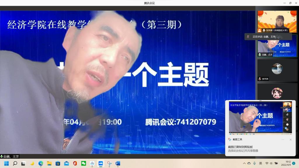4月9日19:00,探花视频 通过腾讯会议举行了“抗疫你我 课堂内外”系列活动第五期暨“共享一个主题”专题交流会。“共享一个主题”活动的开展,旨在全面做好疫情防控期间的教学工作。通过“同看一部电影、同读一本书、同唱一首歌、同聊一个话题、同讲一个故事、同练一段舞蹈”加强教师与学生之间的沟通交流,切实拉近疫情防控静态管理期间师生间的距离,有效调节学生心理状态和自控水平。
