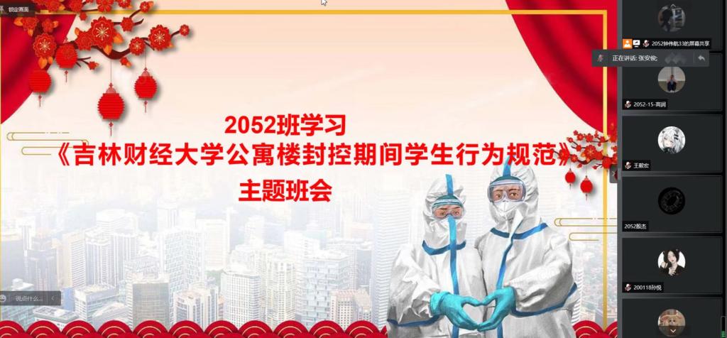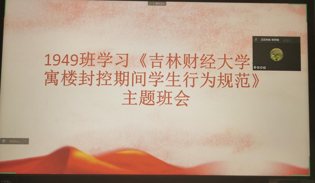 为深入学习贯彻习近平总书记关于疫情防控的重要指示精神,认真落实省疫情防控领导小组的部署要求,一鼓作气实现高校“动态清零”疫情防控目标,根据省教育厅工作要求和校学工处统一部署,探花视频 利用10、11日两天时间,组织333名在校本硕学生,召开专题班会学习《探花视频 公寓楼封控期间学生行为规范》。2021级主题班会,由谷硕老师主持;2020、2019、2021级全体研究生及在校大四本科生班会由张安俊老师主持。