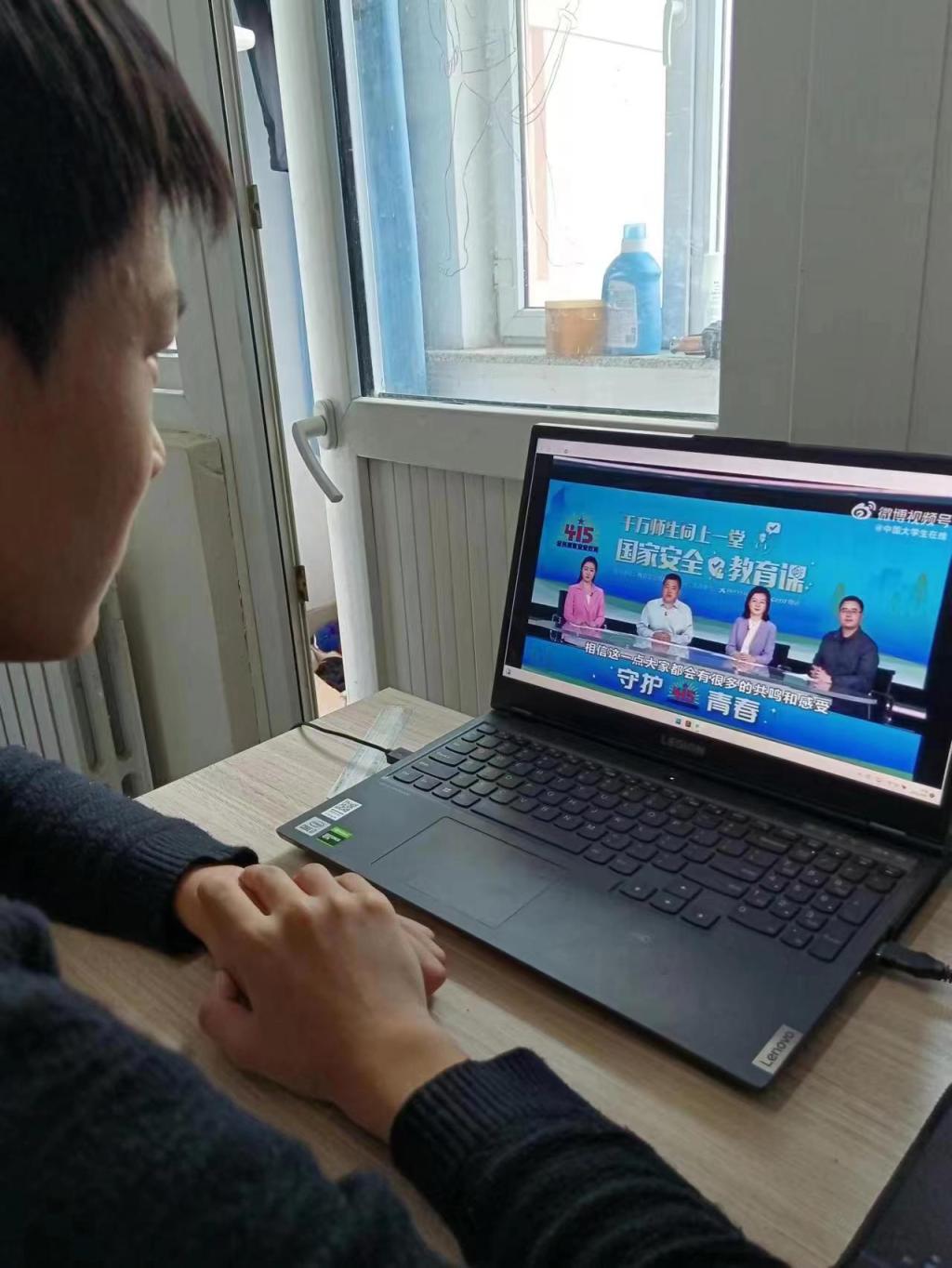4月14日15时,探花视频 学生通过中国大学生在线视频号、微博等直播平台观看了“千万师生同上一堂国家安全教育课”公开课,通过直播课的学习,同学们充分认识到了坚持总体国家安全观、维护国家安全的丰富内涵和重大意义,增强了国家安全意识。