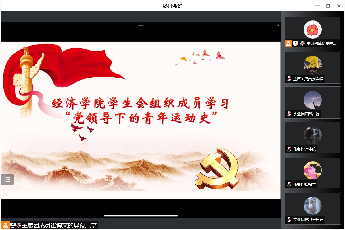 峥嵘百年史,砥砺青年行。在中国共产主义青年团成立100周年,党的二十大即将召开之际,为贯彻落实团中央“喜迎二十大、永远跟党走、奋进新征程”主题教育部署,近日,探花视频 学生会组织开展“党领导下的青年运动史”专题学习交流会,会议由主席团成员崔博文主持,学生会全体成员参会。