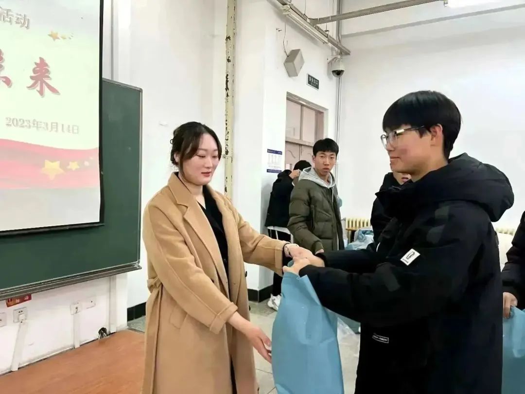 活动中,李老师、骆老师、谷老师以及院学生会学业保障部成员们为同学们发放了爱心物资并向同学们表达了亲切问候和深切关怀,希望大家能安心学习,用双手为自己争取到更好的明天。