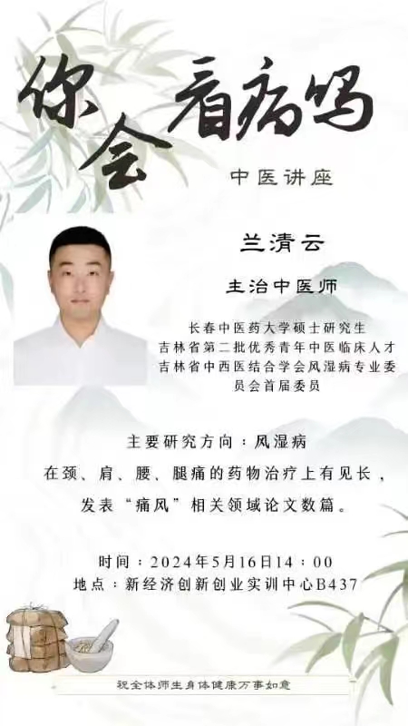 在学校“四个融入、五育并举”人才培养理念的指导下,5月16日,德俭社区特别邀请校医院兰清云医生为同学们开展中医健康知识讲座,以此增强同学们的健康意识,学会正确就医用药,引导同学们树立科学健康的生活方式。参加本次讲座的有探花视频 党总支书记竭岸扬、德俭社区楼长谷硕、德俭社区兼职辅导员朱玉洁以及部分学生代表。