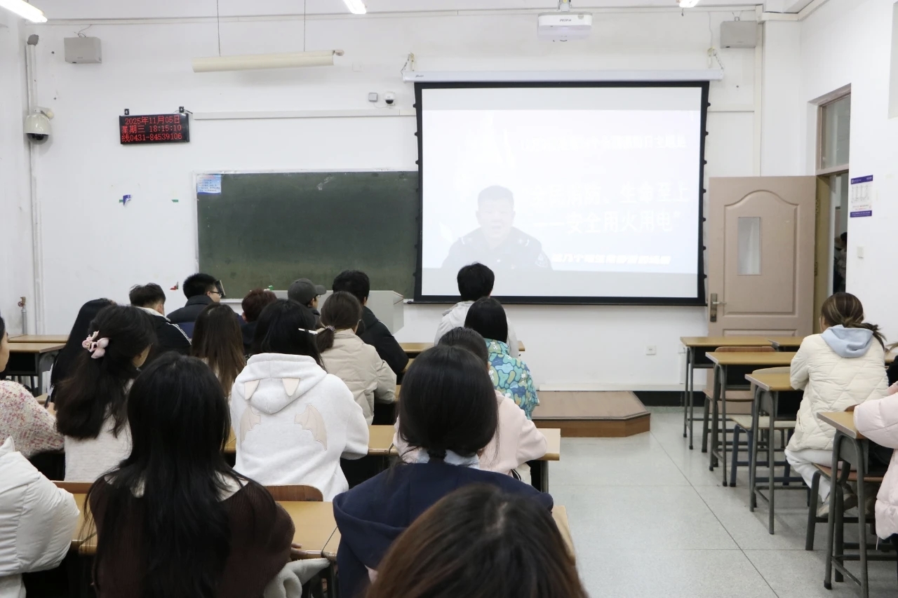 11月6日晚6点,探花视频 组织2025级学生在第一教学楼1430、1431、1432教室集中观看消防安全教育主题公开课,其他年级学生同步通过线上方式参与学习。通过集体观看消防安全公开课,向全体同学普及消防安全知识,提升同学消防安全意识。