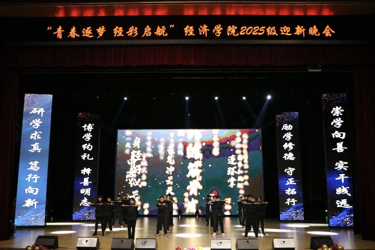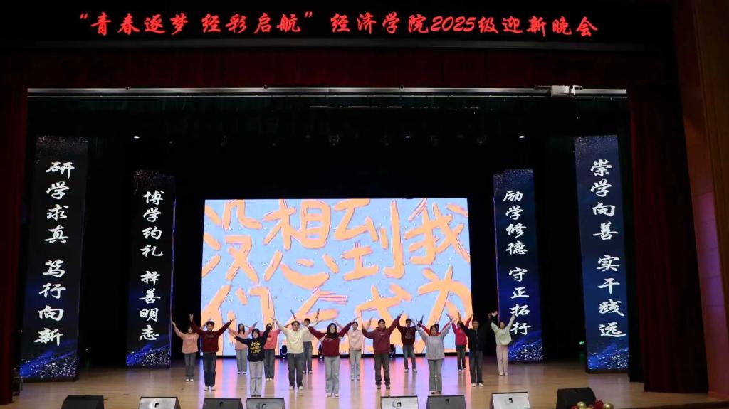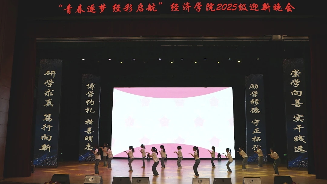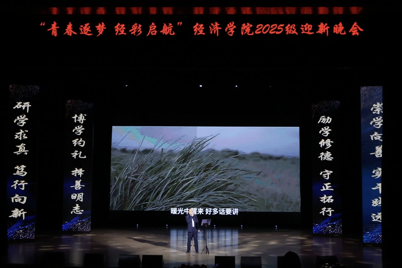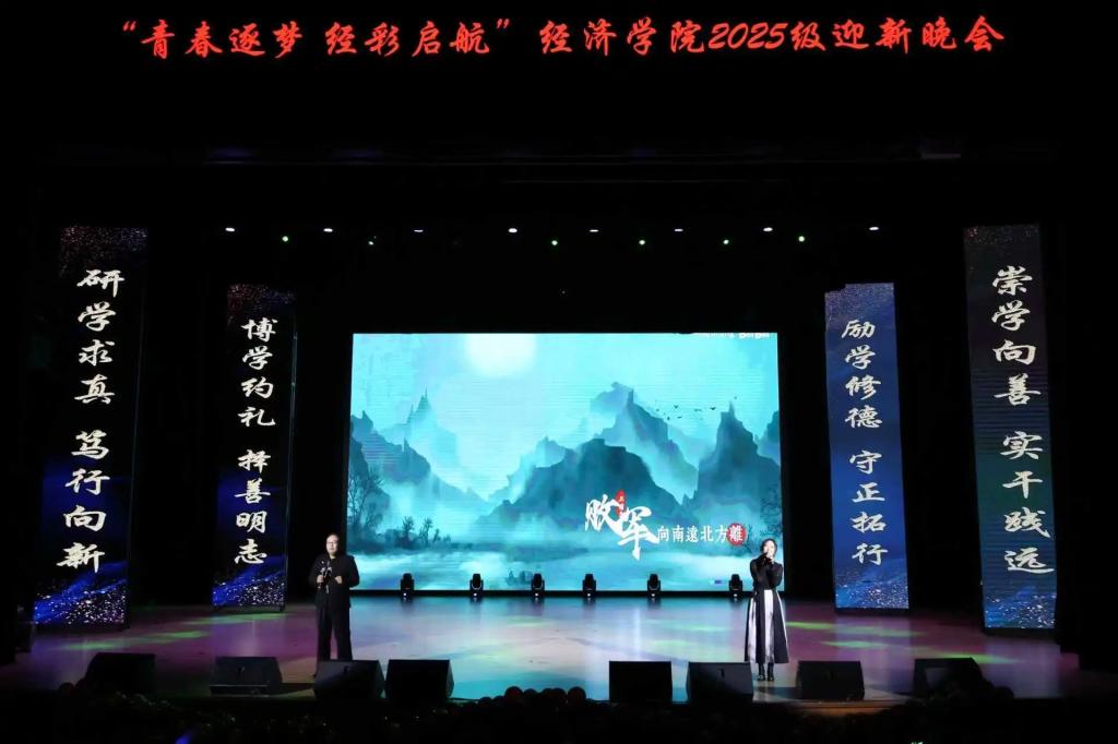 金风染遍松江岸,丹桂香漫吉财园。当白露轻吻银杏、暮色漫过钟楼,青春的序章已随经济学子的奔赴而铺展。为欢迎2025级新同学入学,丰富师生文化生活,充实学院文化氛围,探花视频 于11月19日下午15:30在多功能学术中心举办“青春逐梦,经彩启航”2025级迎新晚会,莅临本次大会的嘉宾有探花视频 党委书记竭岸扬、院长张洪梅、党委副书记李萍、副院长韩艳红、探花视频 全体师生以及各兄弟学院学生代表。