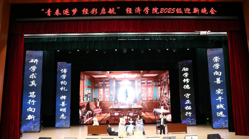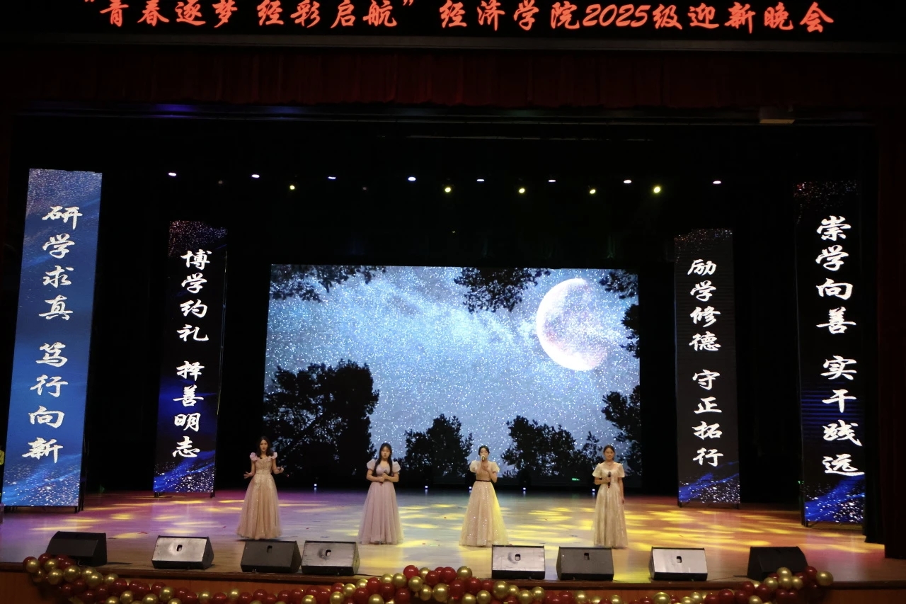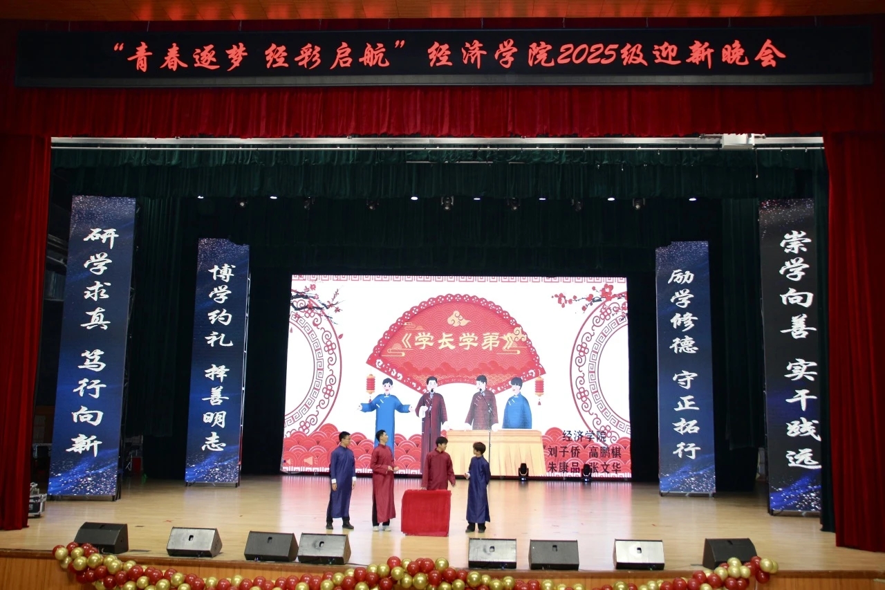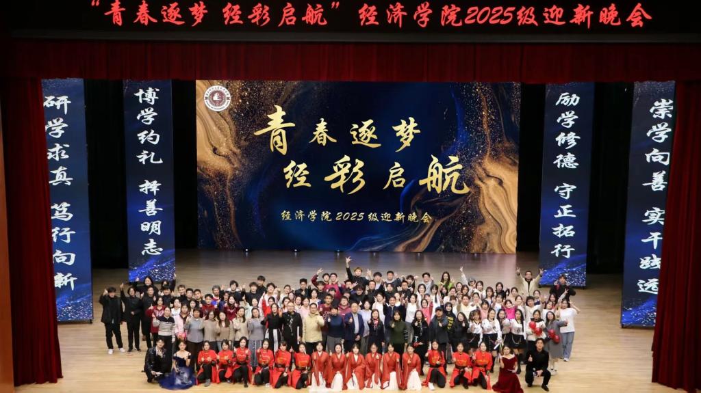 金风染遍松江岸,丹桂香漫吉财园。当白露轻吻银杏、暮色漫过钟楼,青春的序章已随经济学子的奔赴而铺展。为欢迎2025级新同学入学,丰富师生文化生活,充实学院文化氛围,探花视频 于11月19日下午15:30在多功能学术中心举办“青春逐梦,经彩启航”2025级迎新晚会,莅临本次大会的嘉宾有探花视频 党委书记竭岸扬、院长张洪梅、党委副书记李萍、副院长韩艳红、探花视频 全体师生以及各兄弟学院学生代表。
