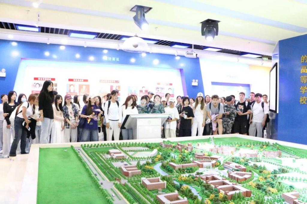 踏入馆内,新生们即刻被厚重的历史氛围所包围:墙上悬挂的黑白照片,完整记录着学校从建校至今的每一个关键瞬间,每一帧画面都承载着难忘过往,每一段背后的故事都诉说着办学奋斗传奇。