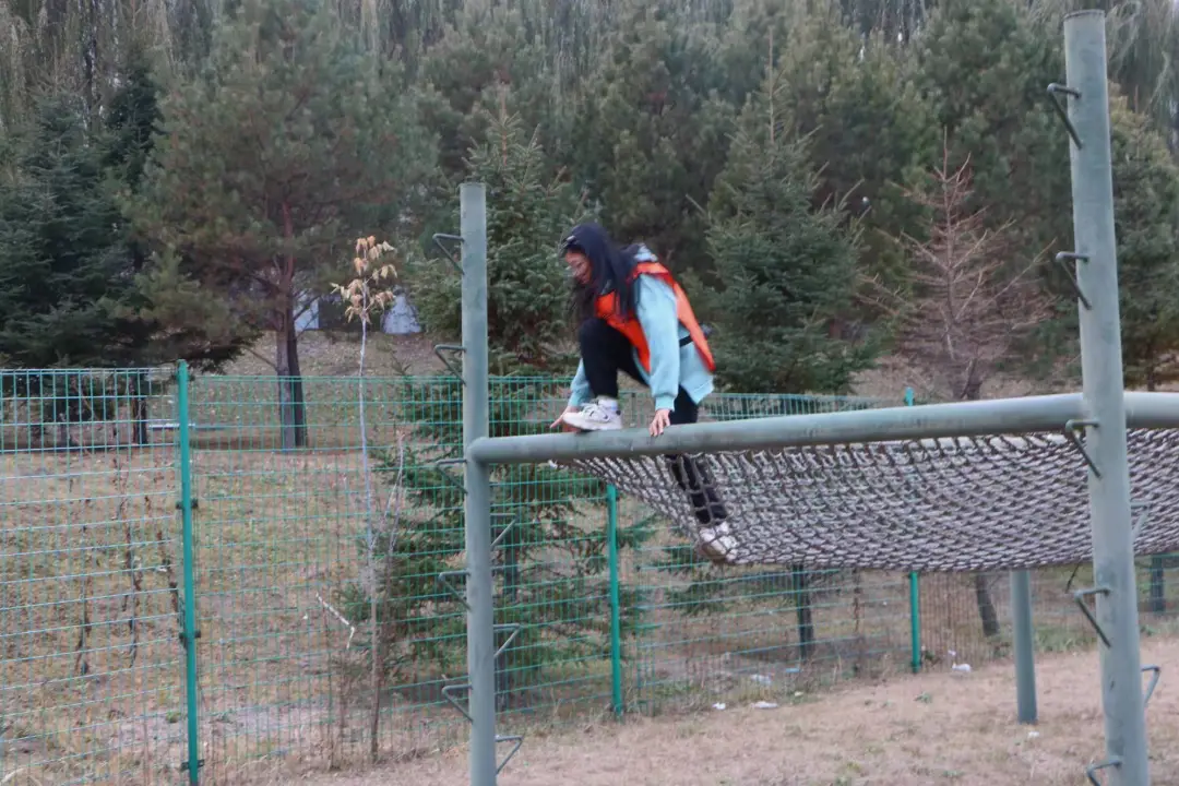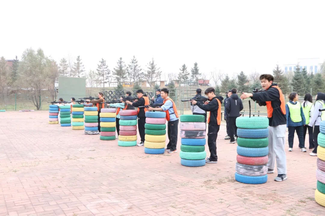 活动现场青春勃发、热情涌动,处处是拼搏进取的身影。在障碍挑战区,同学们身手矫健,攀爬绳网时动作利落协调,跨越高低杠时果断坚决,充分彰显了新时代大学生的勇气与自信;体能训练场上,云梯攀爬项目成为焦点,同学们紧握横杆奋力前行,每一次引体向上都是对上肢力量与意志力的双重淬炼,汗水在阳光下折射出坚毅的光芒;最受关注的团队竞技环节中,参赛队伍在轮胎掩体间开展仿真枪战术对抗,队员们既需制定缜密作战方案,又要保持默契配合,现场呐喊声、欢呼声接连不断,将活动气氛推向顶峰。