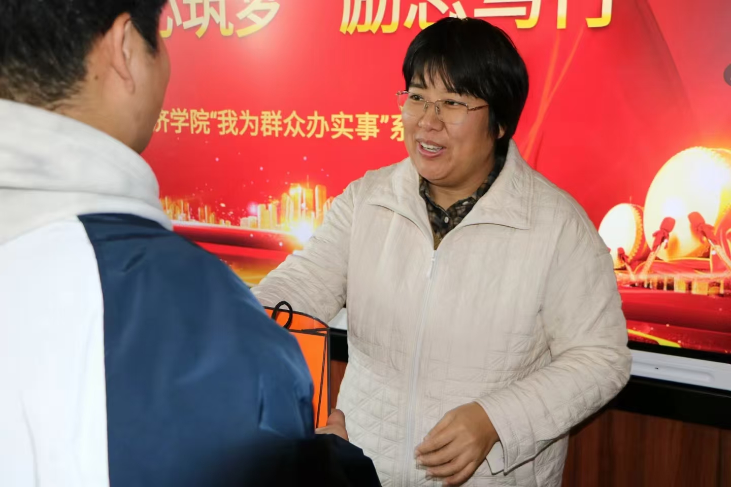 活动最后,老师们为各位同学发放温暖物资,传递温暖与关爱,表达了对同学们的殷切希望,引导同学们成长为自尊自爱、自信自强、能够创造美好生活、立志在中华民族伟大复兴的历史进程中贡献青春力量的时代新人。