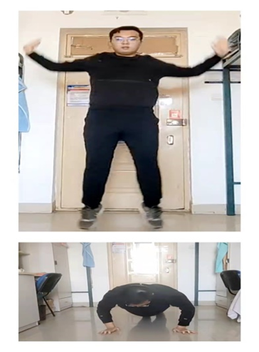 2020级毛浩、2021级石英佟同学在云动会中参与了男子俯卧撑和开合跳这两个项目,他们表示参加云动会虽然有一点累,但愉悦了身心、感受到了运动的乐趣,特别是为大家单调的疫情防控生活增添了一抹别样的乐趣。