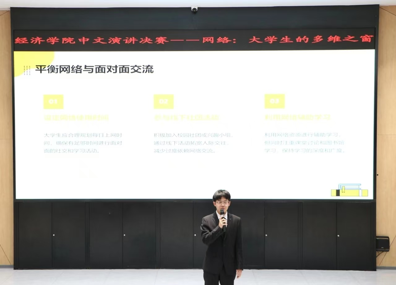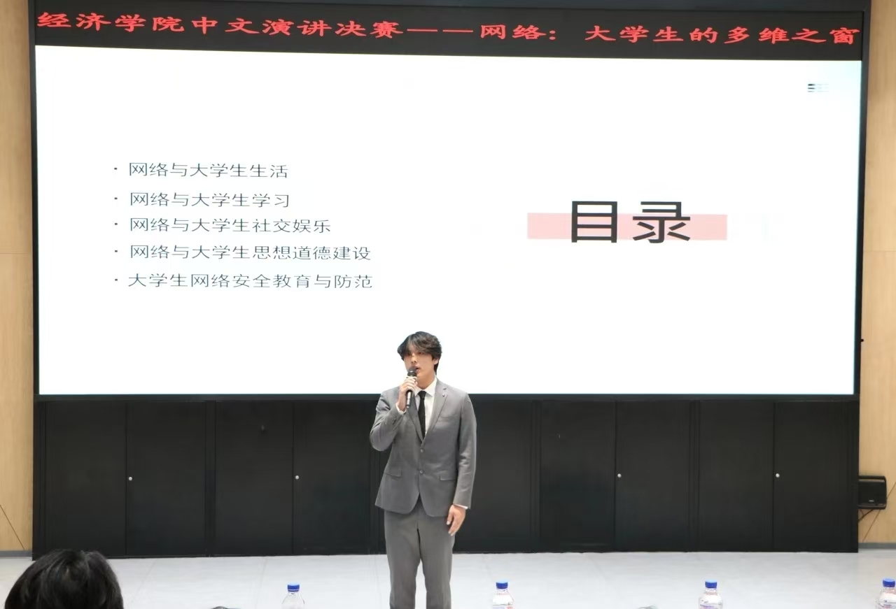 为了丰富同学们的校园生活,提升同学们的语言表达能力和综合素质,让同学们更加辩证地看待网络在我们学习生活中所扮演的角色,理性文明上网,让网络更好地服务于未来的学习与生活,探花视频 于10月25日举办以“网络:大学生的多维之窗”为主题的中文演讲决赛。探花视频 党总支副书记李萍老师、探花视频 党团学生会骨干成员以及2024级全体同学都来到了比赛现场,认真观看选手们的激情演讲。