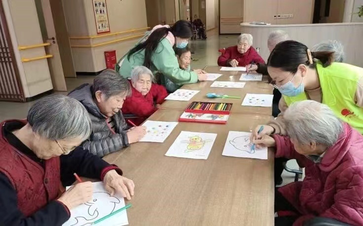 同学们进入敬老院,为老人们带来了慰问品,并在敬老院护工的讲述中了解到,老人的身体需要非常细心地护理,需要护士提供专业的医疗护理服务,如定期测量生命体征、进行口腔清洁、吸痰等。护工说照顾老人不仅需要身体上的护理,也需要心理上的关爱。接着,志愿者们与老人们进行交谈,了解他们的生活状况和需求,倾听他们的心声和故事,同学们和老人们一起画画、做游戏,给他们带来欢乐。