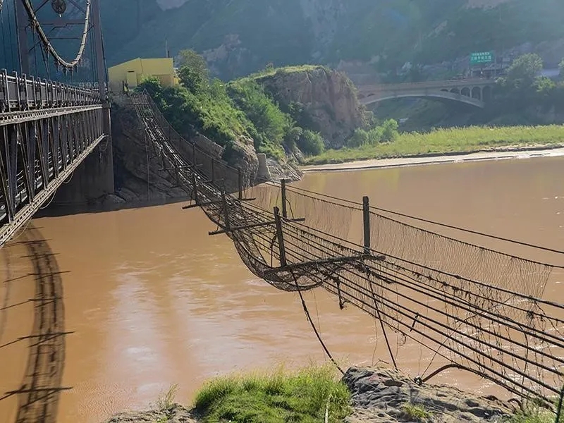禹门口黄河铁索桥于1949年3月正式动工。第一期工程是制造构件和挖桥基,兵分两路,同时进行。第二期工程是架设铁索,这是整个工程最艰巨的阶段。9月初工程转入铺设加固的第三阶段。为了赶上10月1日开国大典时试桥,工人们昼夜施工,在桥底和两侧用铁丝网勾设护栏,铺敷桥板,桥板用铁丝固定在铁索上。9月底工程基本完成,秦晋两岸人民奔走相告,民声蒲剧团(即王秀兰蒲剧团)应邀前来助兴演出。10月1日凌晨,参加试桥典礼的人群,敲锣打鼓,一早来到渡口两岸。但万万没想到,夜里一场大风,桥板全部被掀翻到河里,只片甲未留。建桥工人并没有气馁,从失败中吸取教训,开始了新的加固工程。1950年春,禹门口铁索桥全部竣工,一条自古未有的新式桥梁横跨禹门,连接了秦晋两省。铁索桥正式投入使用后,每天有上千人次通过,搬运货物可达800吨,从来没发生过重大事故。自1950年建成至1975年新公路桥通车止,25年中,在社会主义建设中发挥了难以估量的作用。1975年,铁道部建桥队在铁索桥旧基础上,建成了现代化的柔性钢悬索公路桥和钢桁梁铁路桥。为了留作纪念,铁索桥和铁路桥、公路桥并排横跨在禹门上,供人们观赏。禹门口的铁索桥、公路桥、铁路桥,沟通了秦、晋两省。三桥并列横跨黄河,如三道凌空的彩虹,增添了龙门的不凡气势。