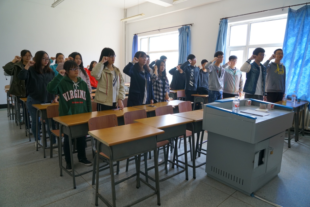 全体团员在团支书的带领下宣读入团誓词,重温誓词后,同学们再次明确了自己必须要有作为一名团员的责任感,并时刻铭记对团员的要求及党对青年团员的期许。