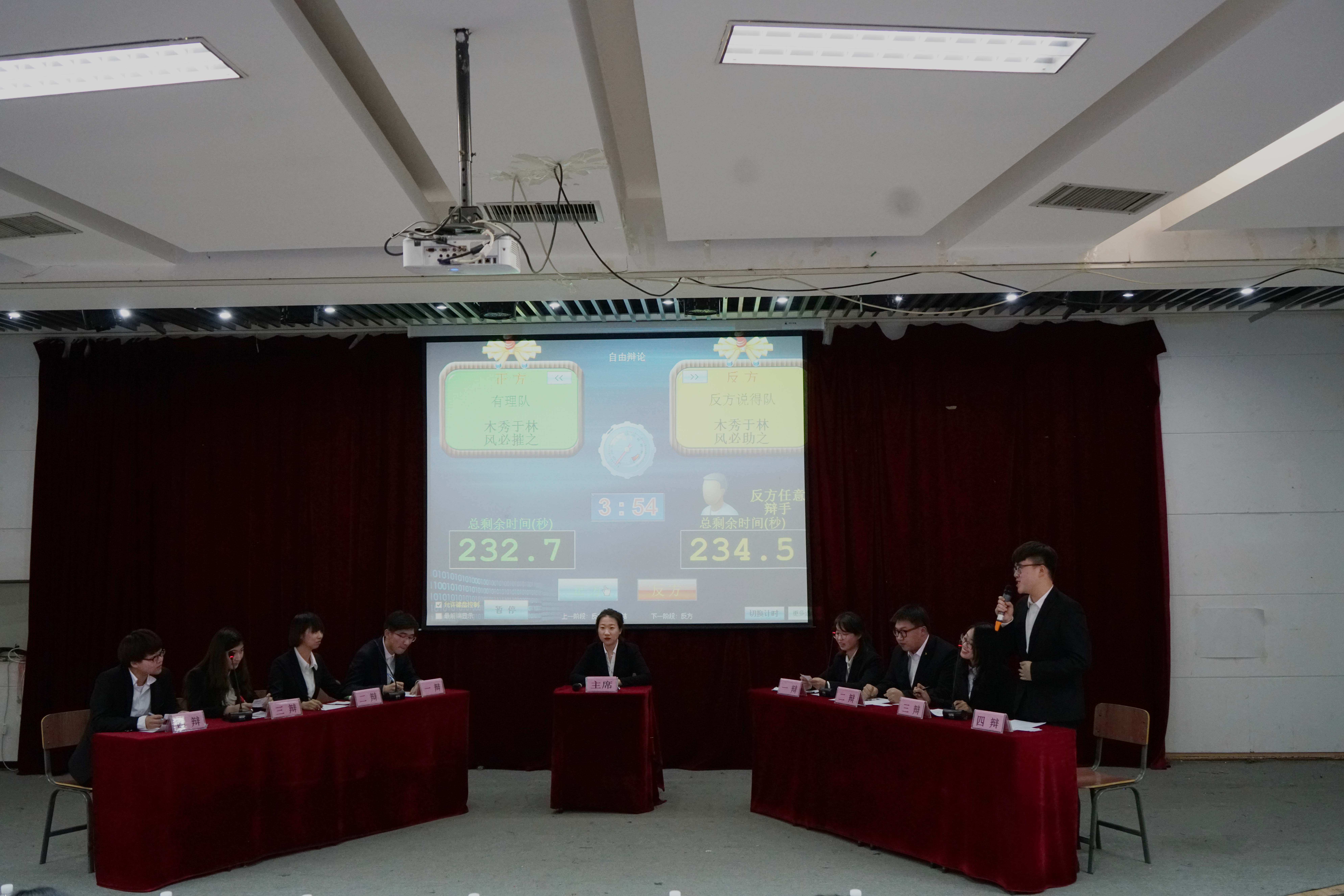 与公共管理学院进行了一场友谊赛,正反双方就“毕业生就业与专业不一致是不是资源浪费”这一辩题展开激烈的论述,期间唇枪舌战,十分精彩激烈,向我们展现了辩论队老将们大方潇洒的风采。随后,决赛正式开始。本次辩题为“木秀于林,是风必摧之还是风必助之”。针对这一辩题,正方“有理”队和反方“说得”队首先对己方观点做了更为详细严谨的补充。在随后的攻辩中,双方辩手竭尽所能、互不相让,将气氛推向了高潮。半场小节过后,比赛继续进行,在自由辩论环节,双方更是针锋相对,步步紧逼,将比赛推向白热化阶段。最后正反双方分别进行总结陈词,圆满结束此次精彩的辩论。最终经过评委们的细致讨论,由“有理”队夺得了本次决赛的胜利。并授予康馨予、夏志航等五位同学“最佳辩手”的称号。